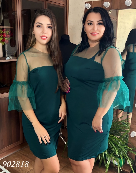 ткань: трикотаж масло фатин (Состав: полиэстер 65%, вискоза 35% ) Размеры: 50, 52, 54, 56 (длин. - 99 см.)