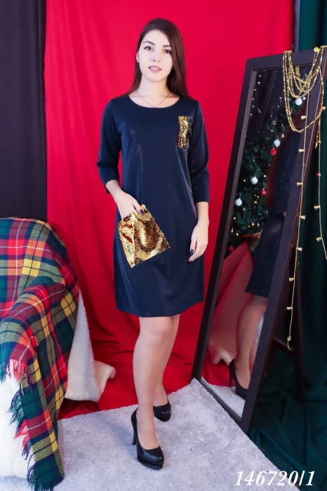 ткань: трикотаж отто "блеск", пайетки (Состав: полиэстер 30%, вискоза 65%, эластан - 5% ) Размеры: 42, 44, 46 (длин. - 90 см.)