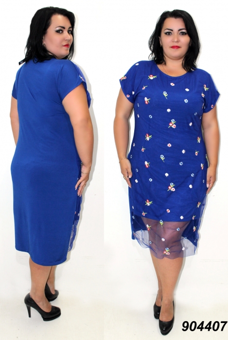 ткань: трикотаж масло сетка вышивка (Состав: полиэстер 65%, вискоза 35% ) Размеры: 48 (длин. - 98 см.)