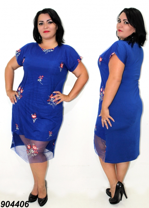 ткань: трикотаж масло сетка вышивка (Состав: полиэстер 65%, вискоза 35% ) Размеры: 48, (длин. - 98 см.)