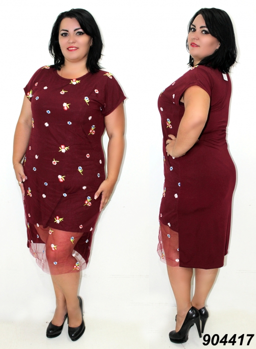 ткань: трикотаж масло сетка вышивка (Состав: полиэстер 65%, вискоза 35% ) Размеры: 48, 50, (длин. - 98 см.)