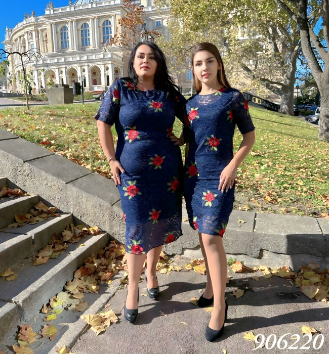 Розмір:42. ткань: тканина: трикотаж масло, гіпюр -вишивка (Склад: поліестер 65%, віскоза 35%.Довж.-95 см