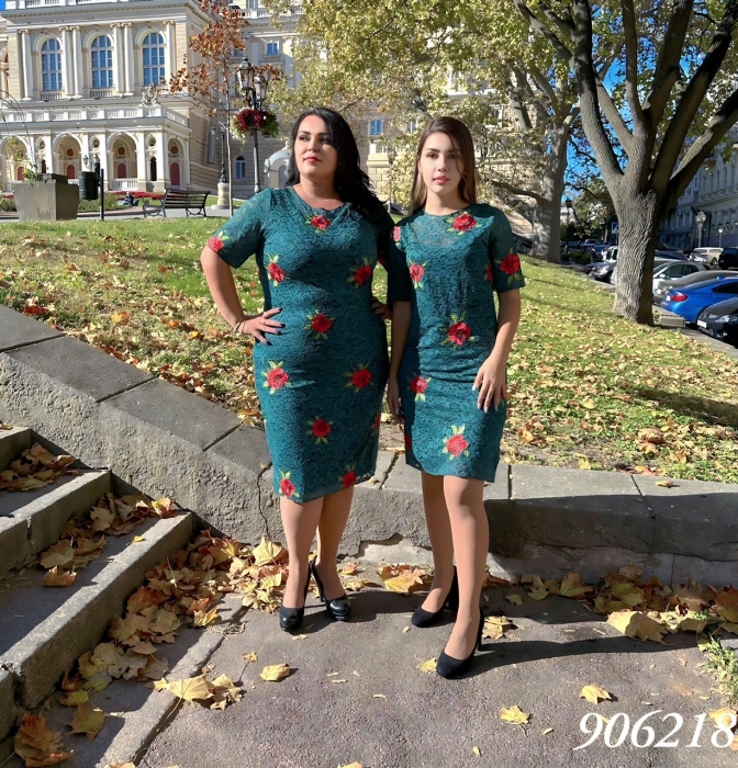Розмір:42, 44. ткань: тканина: трикотаж масло, гіпюр -вишивка (Склад: поліестер 65%, віскоза 35%.Довж.-95 см