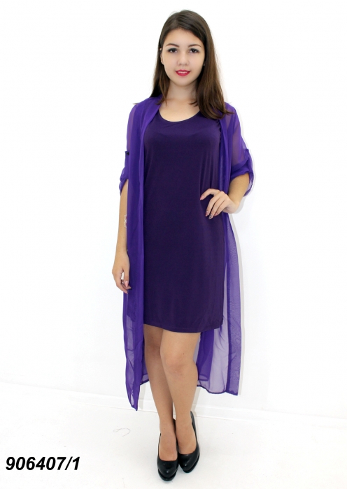 Розмір: 42. Тканина: трикотаж - масло, кардиган шіфон з'ємний. Склад: 30%-віскоза,60%- поліестер, 10% -еластан. Довжина сукні 90см. Довжина кардигану -110см.)