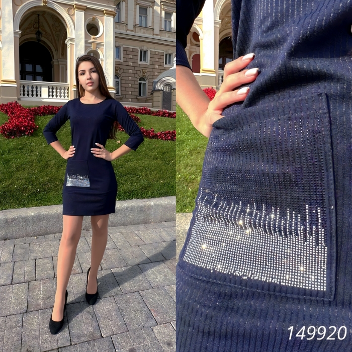 Розмір: 42, 44, 46. Тканина: трикотаж - рубчик з люрексовою ниткою. Прикрашено каміннями.Склад:30%-віскоза,60%- поліестер, 10% -еластан. Довж.88см.)