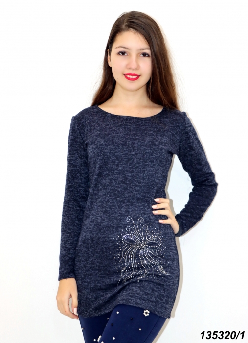 ткань: ангора-меланж ( 65%- вискоза, 30%-полиэстер,5%-эластан), украшен камнями Размеры: 42, 44 (дл. - 75см.)