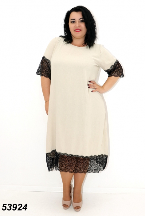 Ткань: софт фактурный «Жатка».СВОБОДНЫЙ КРОЙ (Состав 35% хлопок, 40% вискоза, 25% полиэстер) украшено стрейч кружевом Размер: 60 (длин.- 115см)