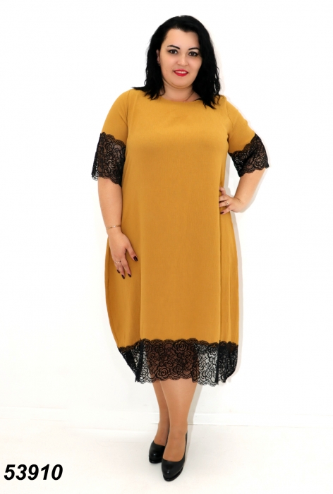 Ткань: софт фактурный «Жатка».СВОБОДНЫЙ КРОЙ (Состав 35% хлопок, 40% вискоза, 25% полиэстер) украшено стрейч кружевом Размер: 50, 56, 60, 64 (длин.- 115см)