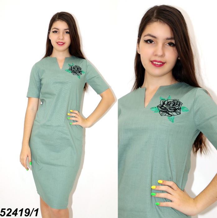 ткань: Лен (НЕ ТЯНЕТСЯ) (Состав: 60% Хлопок, 40% Полиэстр), машинная вышивка Размеры: 42, 44 (длин. - 95см.)