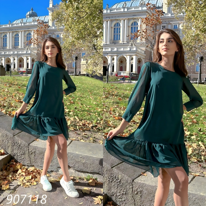 Розмір: 42,44,46. Тканина: трикотаж - масло, шіфон з'ємний. Склад: 30%-віскоза,60%- поліестер, 10% -еластан. Довж.98см.