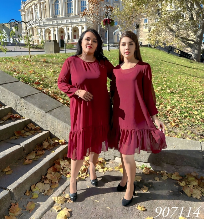Розмір: 42,44,46. Тканина: трикотаж - масло, шіфон з'ємний. Склад: 30%-віскоза,60%- поліестер, 10% -еластан. Довж.98см.