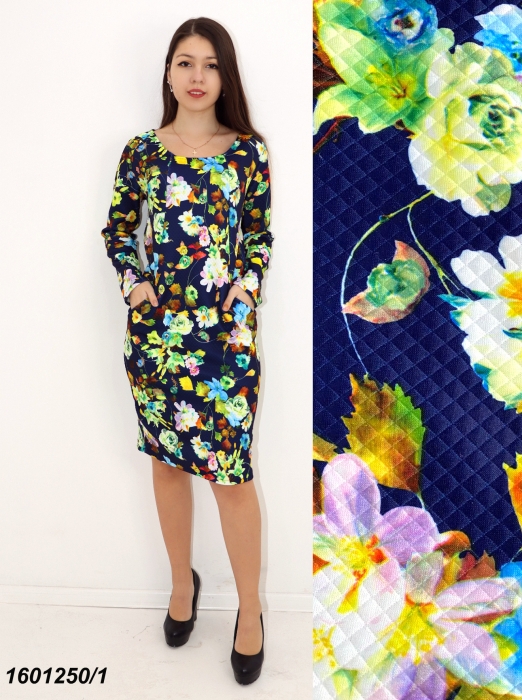 Розмір: 42, 44, 46.Тканина: дайвінг стьобаний принт. ( Склад :Полиестер-95%, Еластан-5%. Довж. - 100см)