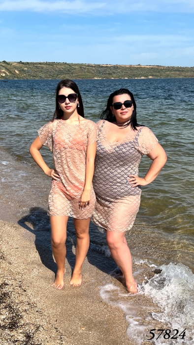 Женская пляжная гипюровая туника, универсальный размер 42-46 (длин.- 85см.), 48 - 50, 52-54, 56-58, 60-62 (длин.- 95см.)