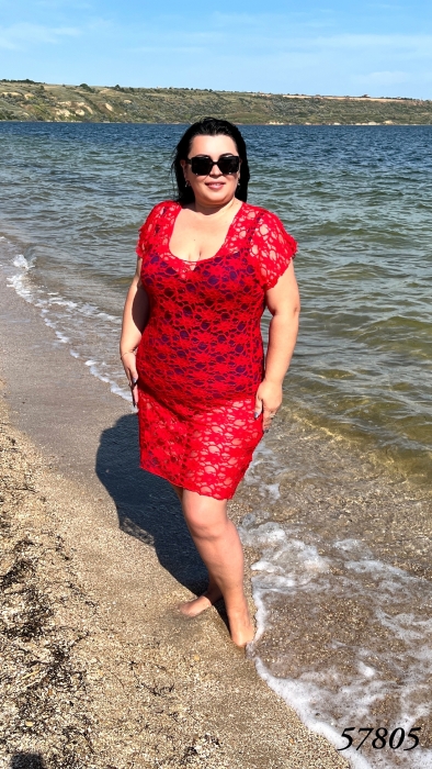 Женская пляжная гипюровая туника, универсальный размер 42-46 (длин.-85см.), 60-62 (длин.- 95см.)