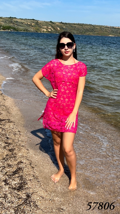 Женская пляжная гипюровая туника, универсальный размер 42-46 (длин.- 85см.), 48 - 50, 52-54, 56-58, 60-62 (длин.- 95см.)