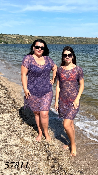 Женская пляжная гипюровая туника, универсальный размер 42-46 (длин.- 85см.), 48-50, 56-58, 60-62 (длин.- 95см.)