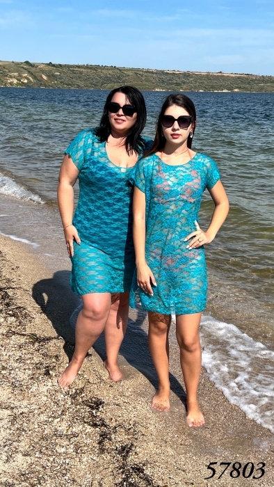 Женская пляжная гипюровая туника, универсальный размер 42-46 (длин.- 85см.), 48 - 50, 52-54, 56-58, 60-62 (длин.- 95см.)