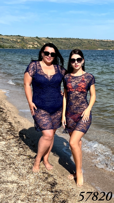Женская пляжная гипюровая туника, универсальный размер 42-46 (длин.- 85см.), 48 - 50, 52-54, 56-58, 60-62 (длин.- 95см.)