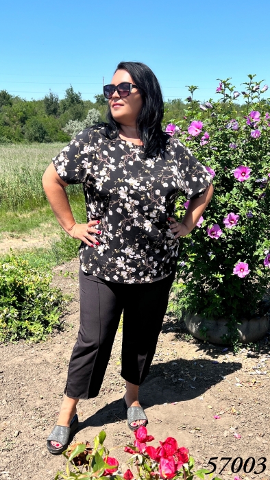 Тканина: софт (тканина розтяжності не має Кофта вільного покрою довжина 75см. Капрі прямого покрою укорочені довжина 85см. • Розміри: 50, 52, 54, 56,