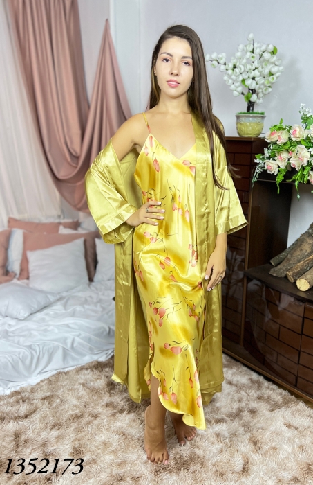 Каталог - ШОВКОВІ КОМПЛЕКТИ (халат + сорочка, халат + двійка) - Комплект: халат довгий+сорочка довга
