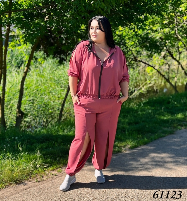 тканина: американська креп жатка (Склад 35% бавовна, 40% віскоза, 25% поліестер) Розмір: 48/50,52/54,56/58,60/62 Дов. кофти - 60см, є капюшон. Дов. штанів, манжет на резинці є кишені - 105см