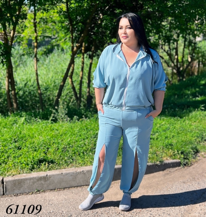 тканина: американська креп жатка (Склад 35% бавовна, 40% віскоза, 25% поліестер) Розмір: 48/50,52/54,56/58,60/62 Дов. кофти - 60см, є капюшон. Дов. штанів, манжет на резинці є кишені - 105см
