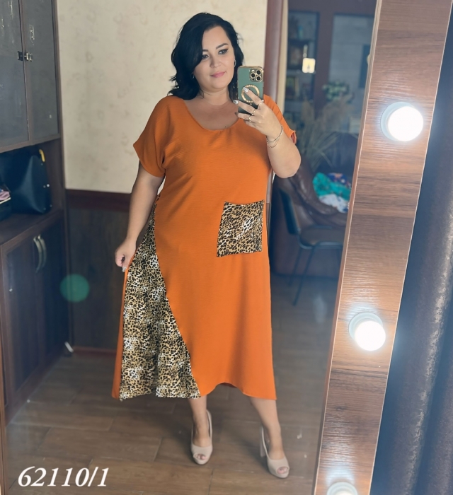 Розмір: 54/56, 58/60, 62/64, 66 тканина: американський креп жатка. Вставки леопарда штапель. (Склад 35% бавовна, 40% віскоза, 25% поліестер) довж. 125см