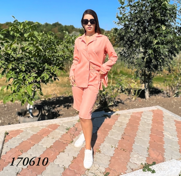 Розмір: 42/46, 48/52, тканина: льон-меланж Довж. шортів - 60см. Довж. рубашки 65см. Довж.рукава 58см