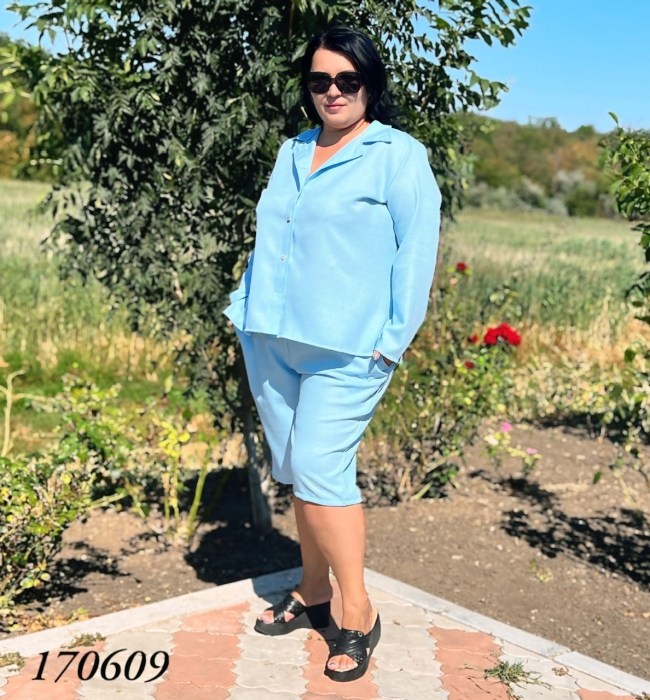 Розмір: 54/58, 60/64 тканина: льон-меланж Довж. шортів - 60см. Довж. рубашки 65см. Довж.рукава 58см