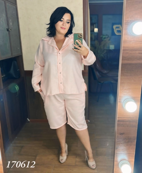 Розмір: 54/58, 60/64 тканина: льон-меланж Довж. шортів - 60см. Довж. рубашки 65см. Довж.рукава 58см