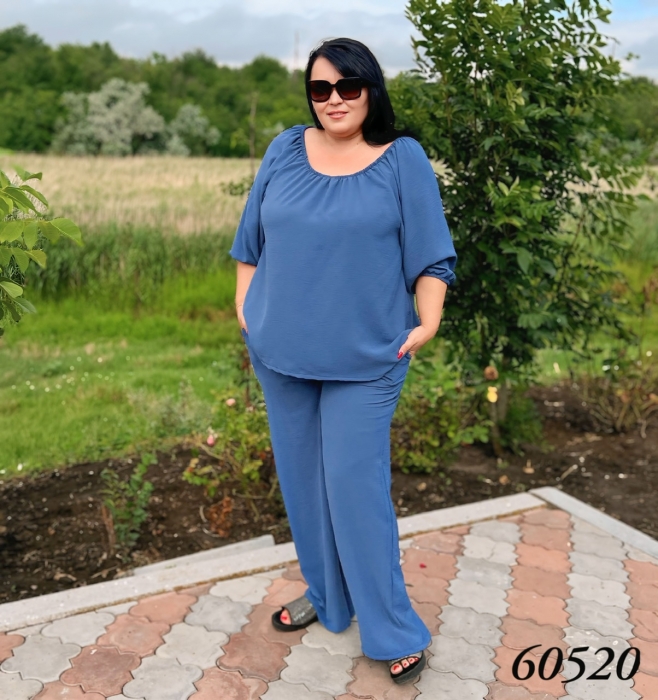 Розмір: 56/58, 60/62. тканина: американський креп жатка (Склад 35% бавовна, 40% віскоза, 25% поліестер) Довжина блузи - 60 см, Довжина штанів - 108см
