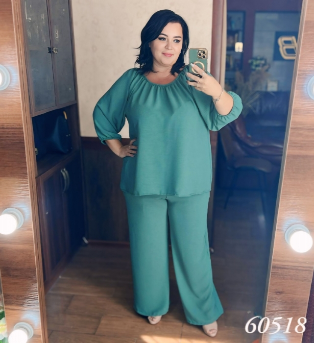 Розмір: 52/54, 56/58, 60/62, 64/66 тканина: американський креп жатка (Склад 35% бавовна, 40% віскоза, 25% поліестер) Довжина блузи - 60 см, Довжина штанів - 108см