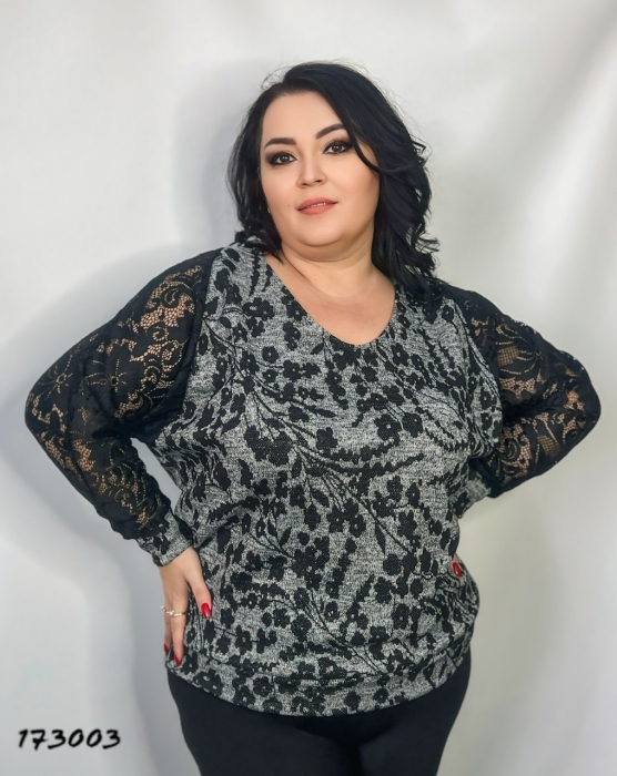 Розмір: 54/56, 58/60, 62/64 тканина тонка в’язка з люрексовою ниткою (склад:64% акрил, 22% поліестер, 14% люрекс) рукава гипюр довжина 70 см