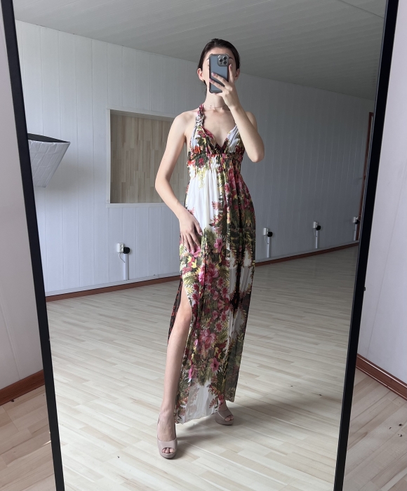 Тканина: шифон, розмір: 50-52, довжина від резинки 118 см, верхня частина сукні регулюється на шиї зав*язкою
