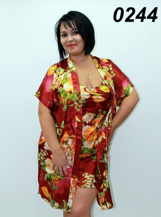 Каталог - ШОВКОВІ КОМПЛЕКТИ (халат + сорочка, халат + двійка) - Комплект:Халат середній+ сорочка середня